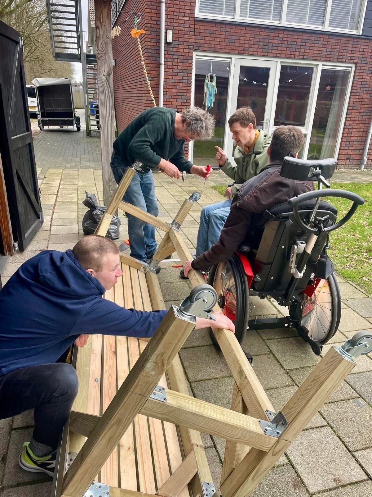 De jongens willen graag knutselen aan een werkbank.  Dat hoef je maar 1 keer aan te geven binnen DBuren en hup er wordt hout gekocht, gezaagd en geschroefd en de werkbank op hoogte en verrijdbaar is een gerealiseerd. Echt multifunctioneel als we een bbq hebben bankschroeven eraf en de schalen met vlees erop.